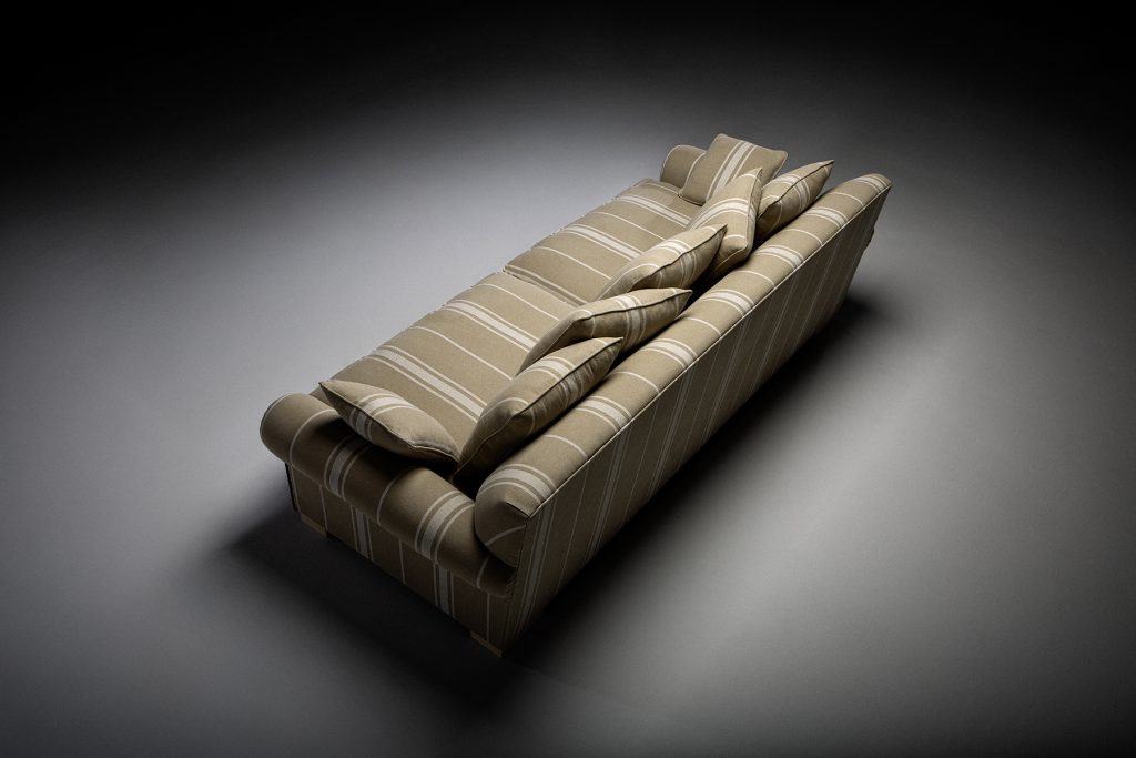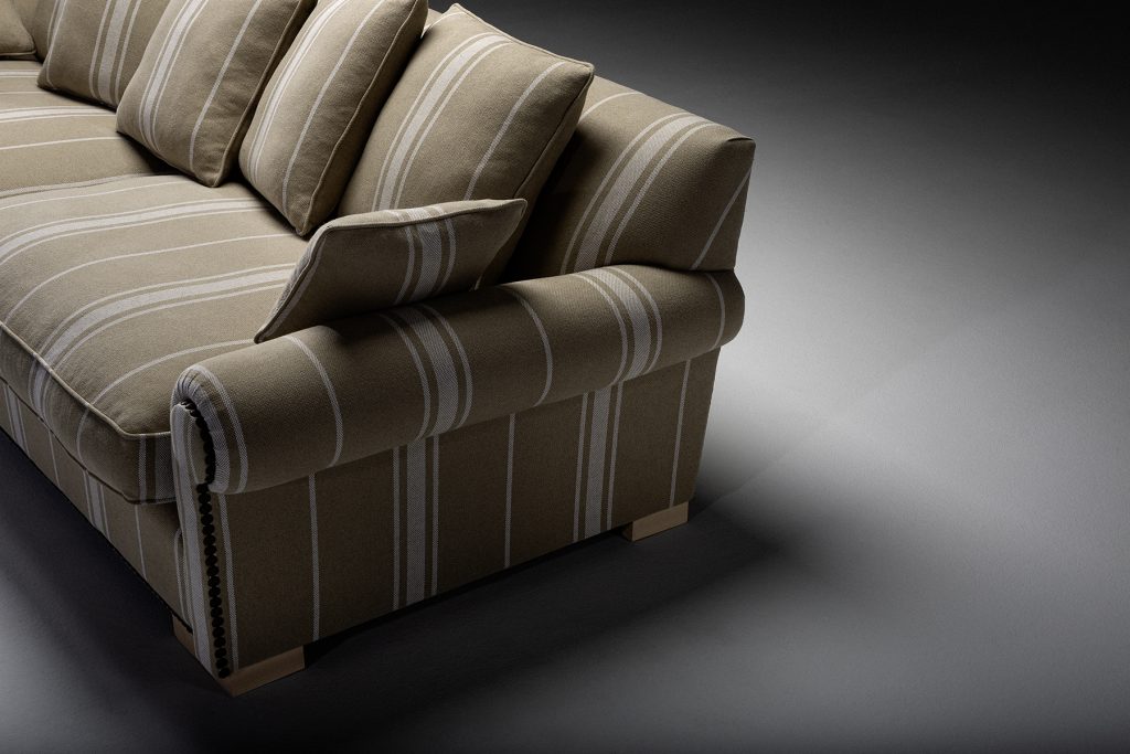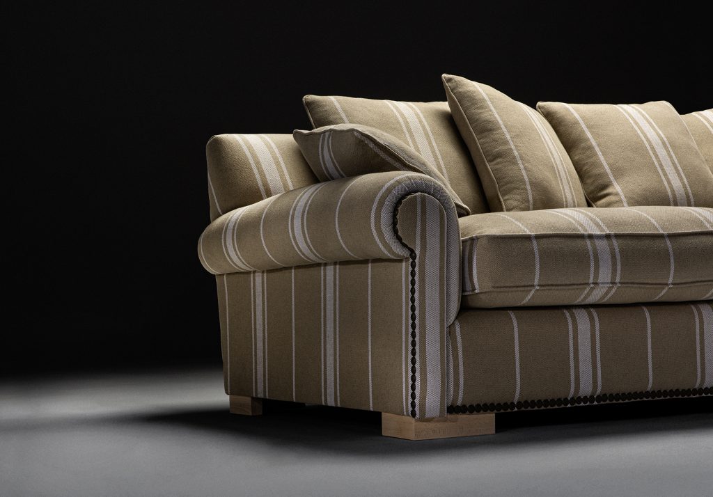 Calpe es una pieza que reivindica el valor de la tradición desde una ejecución impecable. Sus brazos enrollados y proporciones sólidas evocan el clasicismo más refinado, mientras que el tejido estructurado aporta ritmo y profundidad visual.