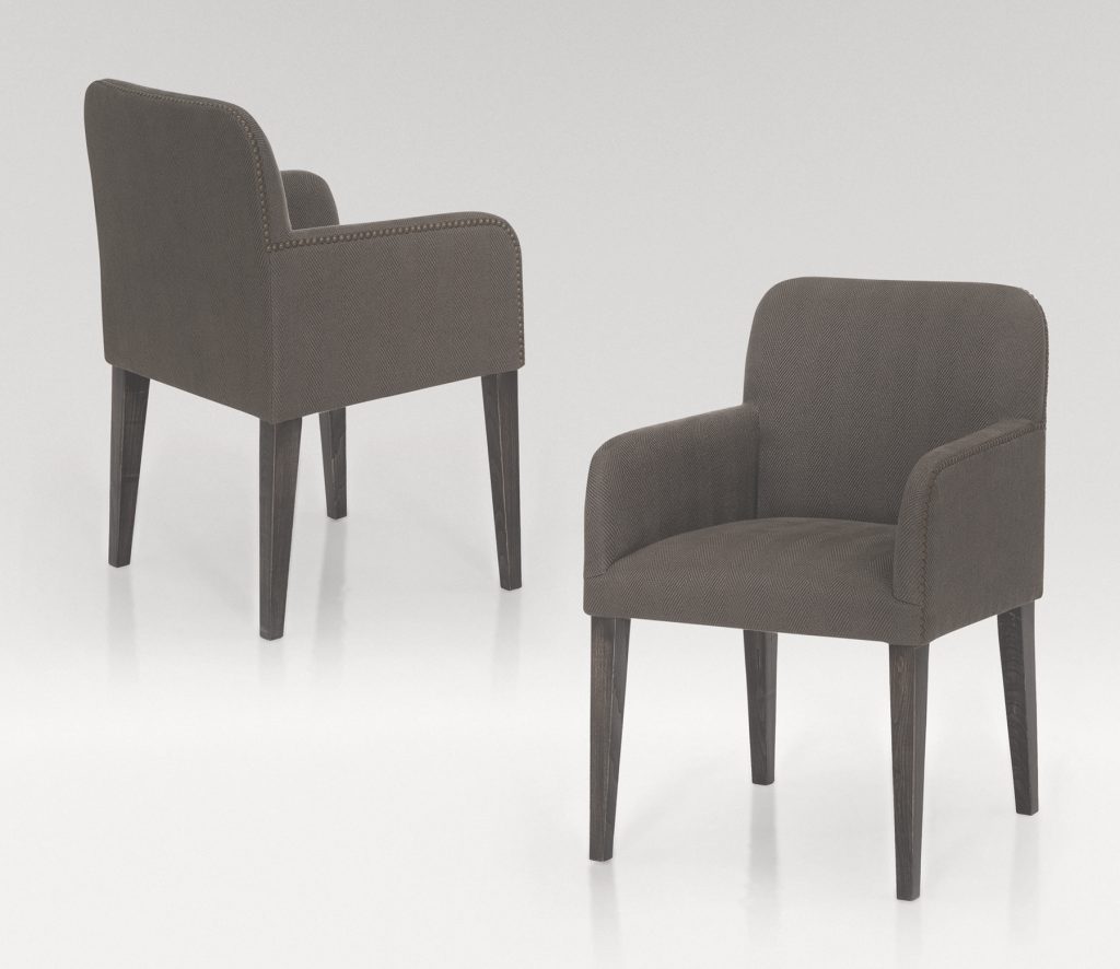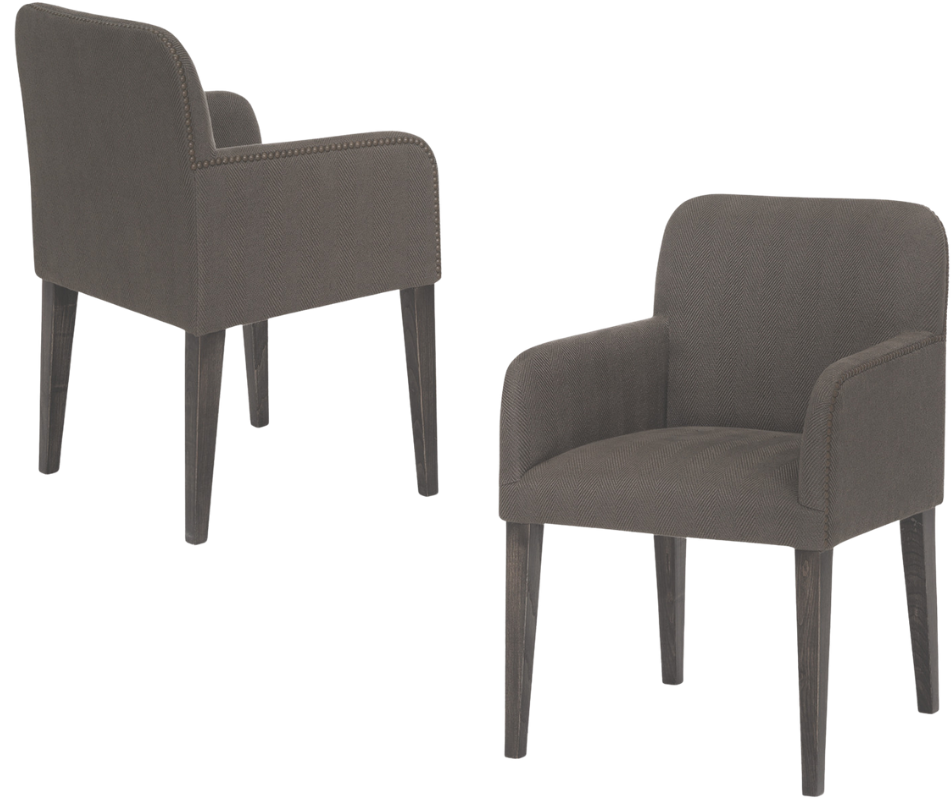 Mauricio es una silla de líneas contenidas que transmite solidez y elegancia desde la proporción. Su respaldo ligeramente curvado y los brazos definidos aportan estructura sin rigidez, creando una silueta equilibrada y confortable.