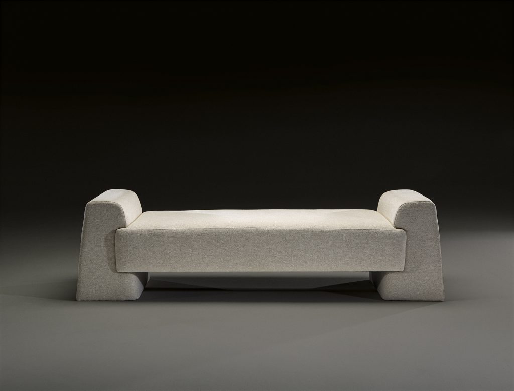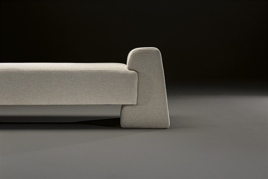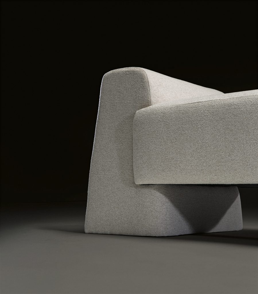 El diván Tulum es una pieza de carácter escultórico donde la forma domina con claridad absoluta. Sus brazos macizos e integrados construyen una silueta compacta y arquitectónica que transmite estabilidad y sofisticación.
